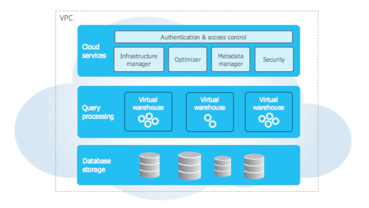 La capa de servicios en la nube utiliza ANSI SQL y coordina todo el sistema. Elimina la necesidad de gestionar y ajustar manualmente el almacén de datos. Los servicios de esta capa incluyen autenticación, gestión de infraestructuras y metadatos, análisis y optimización de consultas y control de acceso.