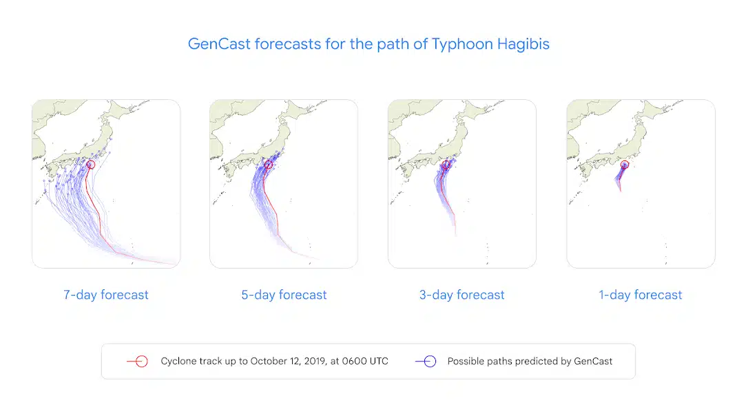 Alors que les modèles traditionnels peinent à offrir des prévisions fiables au-delà de dix jours, GenCast peut prédire avec précision les conditions météorologiques courantes, mais aussi les événements climatiques extrêmes, sur une période de 15 jours.