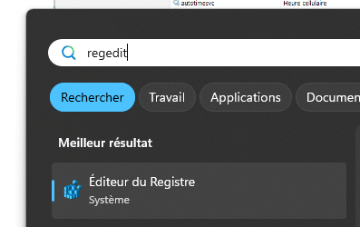 Une gestion poussée des services peut être effectuée via la base de registre Windows. On accède à cette dernière en tapant « regedit » dans le menu démarrer :