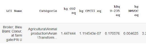 À noter que l’ensemble des indicateurs est ramené à la fabrication de 1 kg de produit alimentaire.