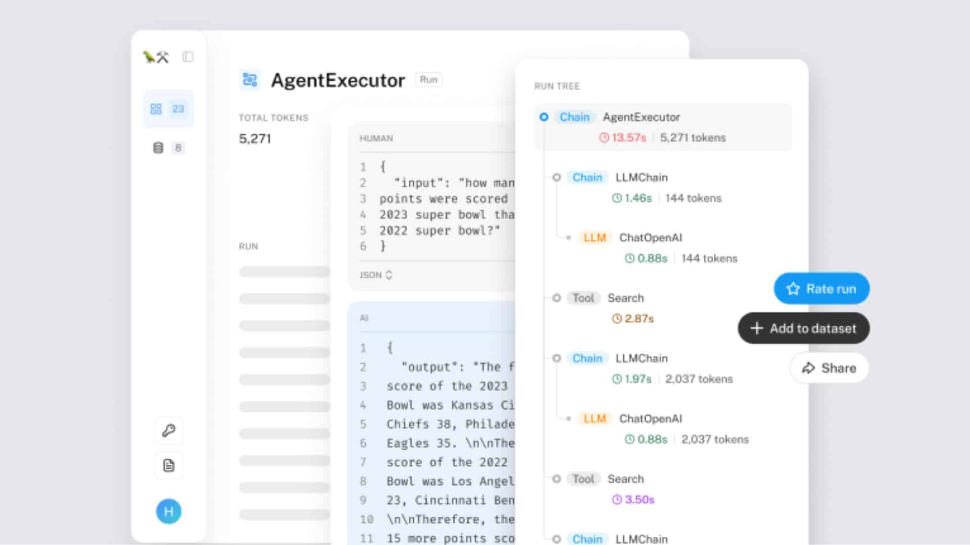 La plateforme donne une visibilité du processus de réflexion du LLM de l’entrée de l’invite à la sortie du résultat. De cette façon, les utilisateurs peuvent expérimenter différents types d’invites et repérer les erreurs ou l’origine de résultats inattendus.