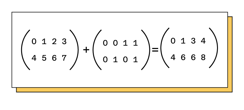 - L’addition : l’addition entre matrices de même dimension revient à additionner chacun des éléments des matrices.