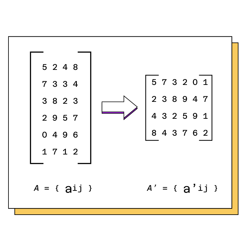 - La transposition : La transposition correspond à la transformation qui transforme les lignes en colonne et inversement, à la manière d’un miroir.