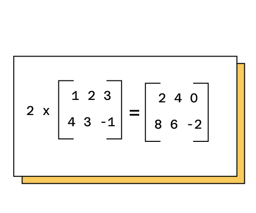 - La multiplication par un scalaire : Multiplier une matrice par un scalaire correspond à la multiplication de chacun des éléments par ce scalaire (multiplier par k revient à additionner k fois les éléments entre eux).