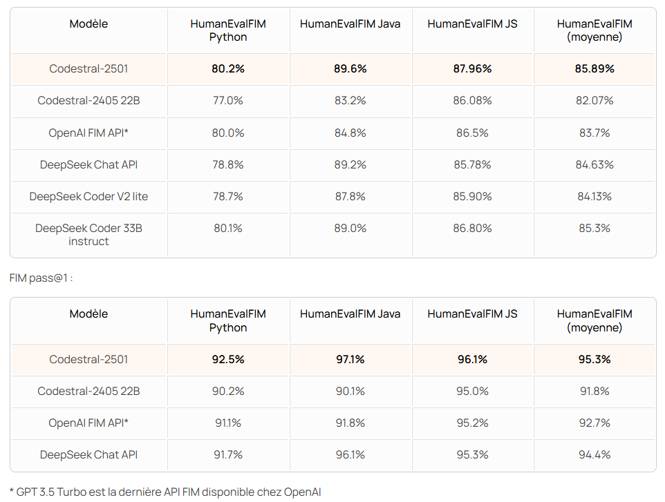 Spécialisé dans des tâches complexes telles que le remplissage au milieu (FIM), la correction de code et la génération de tests automatisés, Codestral s’impose comme le nouveau standard du développement logiciel et la génération de code à faible latence et à haute fréquence.
