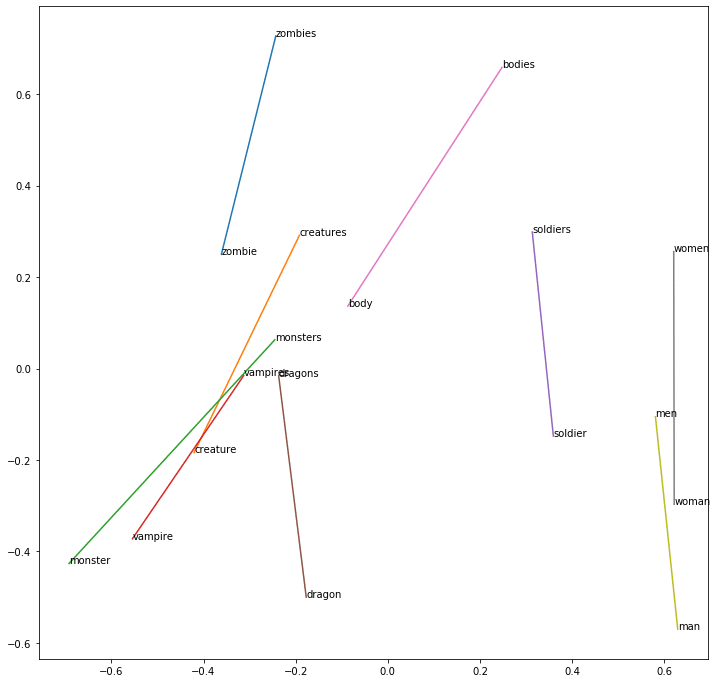 Ici, le mot « monsters » et « werewolves » semblent être très proche dans le contexte de notre jeu de données.