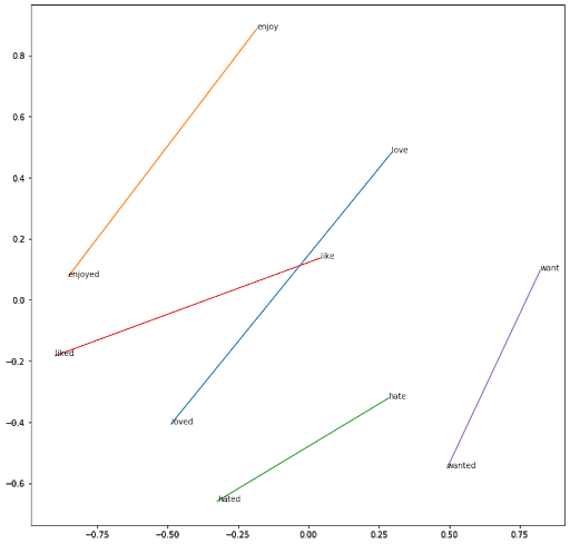 arithmetic_vector = word2vec[index_word1] – word2vec[index_word2] + word2vec [index_word3]
