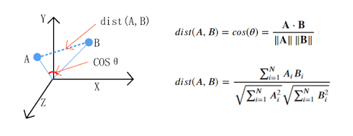 La « Cosine similarity » est généralement utilisée comme métrique pour mesurer la distance lorsque la norme des vecteurs n’a pas d’importance. Cette métrique capture la similitude entre deux mots.