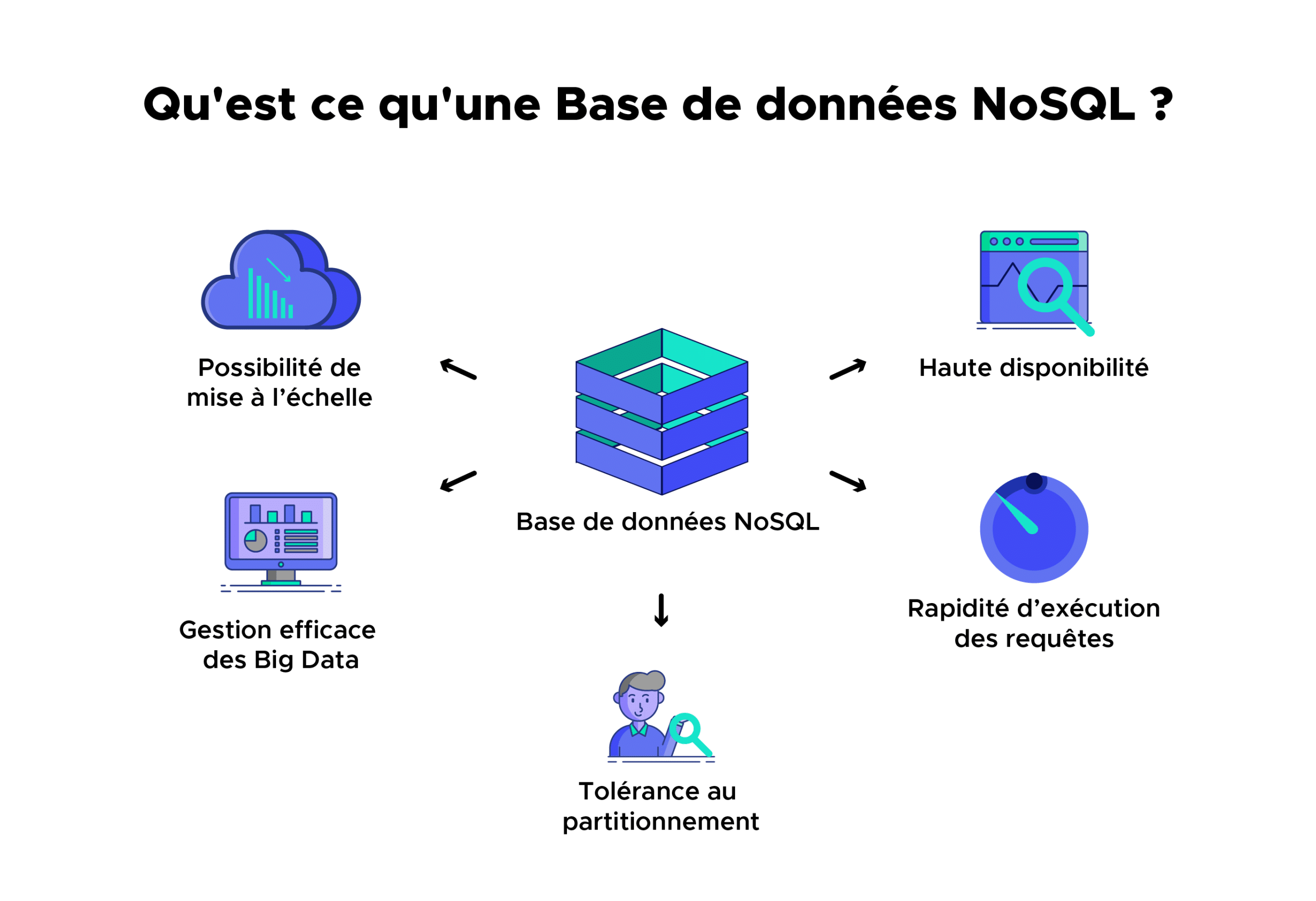 Une base de données NoSQL est une base de données « non relationnelle ». Il est possible d’y stocker des données sous une forme non structurée, sans suivre de schéma fixe. Les jointures ne sont plus nécessaires, et le scaling est facilité.