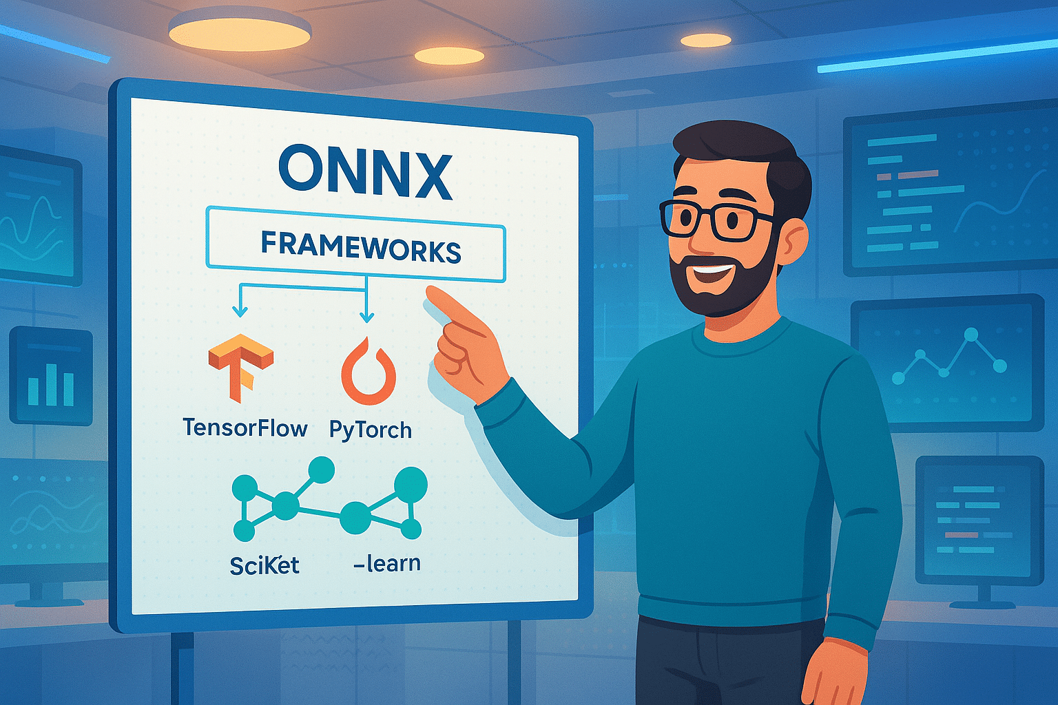 Cette combinaison PyTorch / TensorFlow / scikit-learn couvre une grande majorité des cas d’usage en IA moderne, du prototypage exploratoire à la mise en production industrielle. ONNX joue ici un rôle de trait d’union entre ces écosystèmes.