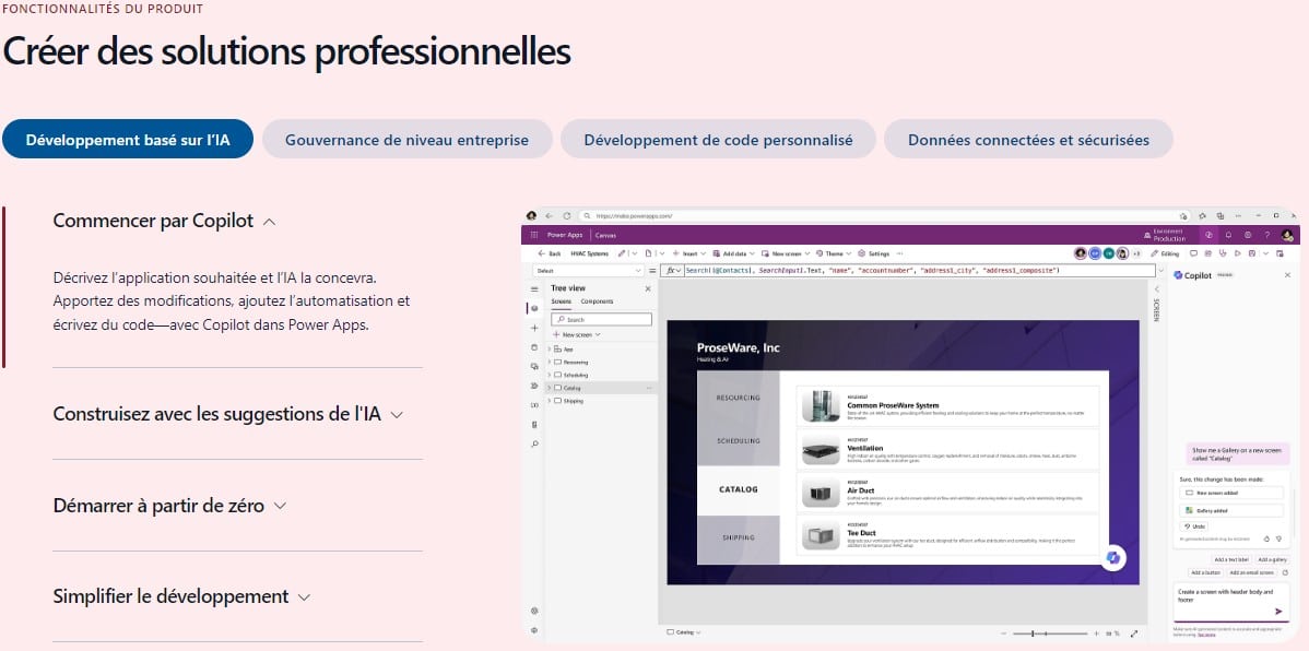 Bon à savoir : si Microsoft Power Apps est très utile pour développer rapidement des applications, cela ne concerne que les apps business. Autrement dit, celles qui sont destinées à l’organisation en interne, et non pour les clients. Si vous souhaitez créer des apps plus complexes pour votre cible, vous devrez utiliser d’autres solutions et maîtriser les bases du code.