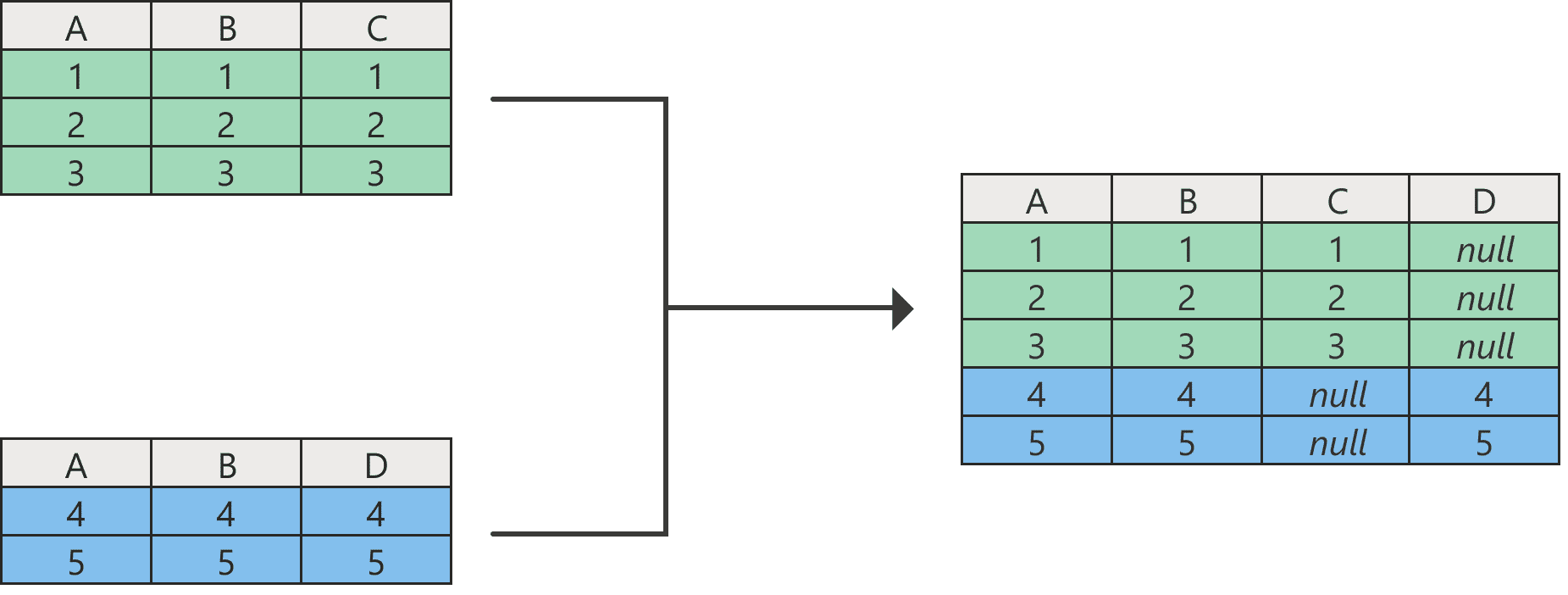 L’ajout d’une requête implique d’avoir toutes les lignes de la requête initiale et toutes les lignes de la nouvelle requête. À l’inverse, en cas de fusion, les lignes des deux requêtes existantes peuvent être mélangées si elles correspondent à des colonnes.