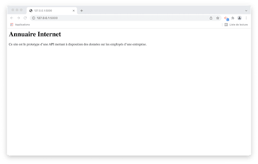 return "<h1>Annuaire Internet</h1><p>Ce site est le prototype d’une API mettant à disposition des données sur les employés d’une entreprise.</p>"