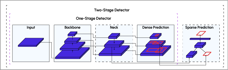 - Head – Consomme les fonctionnalités du Neck et contient des étapes de prédiction de bounding boxes et de classe.