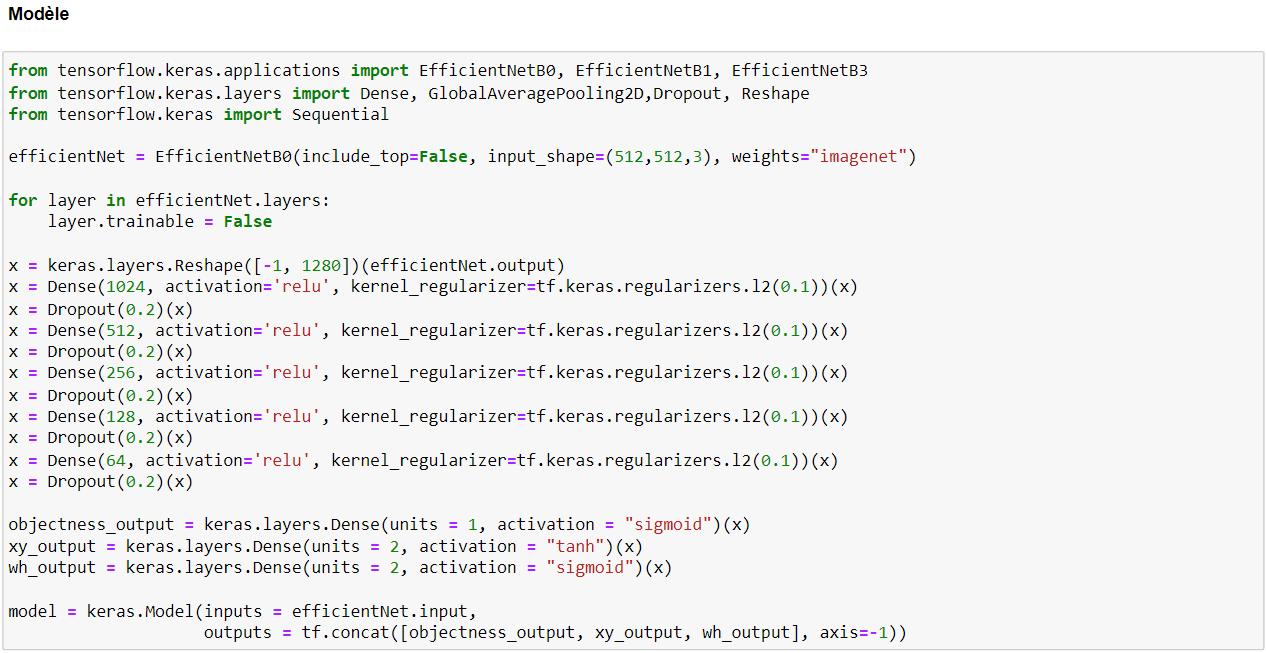 - nous avons utilisé l’architecture efficientnetB0 comme backbone,
