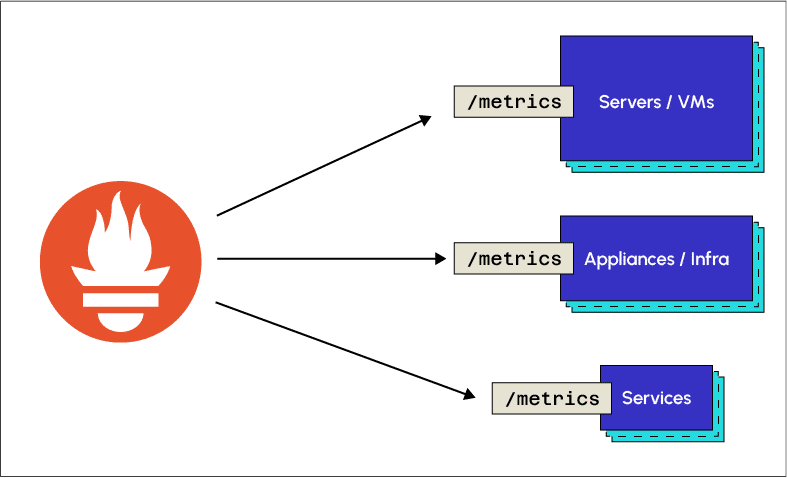 Ces cibles (targets) peuvent s’agir d’applications, de services, de serveurs, de conteneurs, de bases de données qui exposent des métriques via un point de terminaison HTTP spécifique appelé « endpoint de collecte des métriques » (metrics endpoint). Les cibles doivent être configurées avec des règles d’exposition des métriques compatibles avec Prometheus.