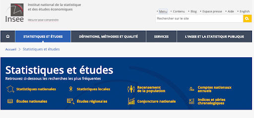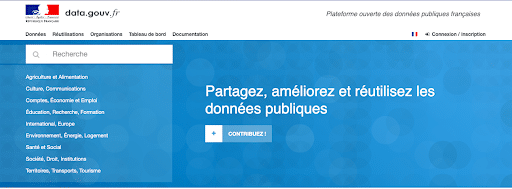 Ce site du gouvernement français met à disposition des données publiques concernant le territoire français. On retrouve des jeux de données sur des sujets variés dont on peut spécifier la granularité territoriale (échelle départementale, régionale, nationale), la source (certains Ministères fournissent des données) ainsi que la période temporelle couverte par les données.