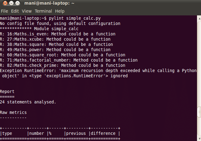Selon le contexte, certaines d’entre elles peuvent ne pas être utiles. La solution serait de configurer Pylint afin de personnaliser la liste de règles et de n’utiliser que celles qui sont pertinentes pour vous.