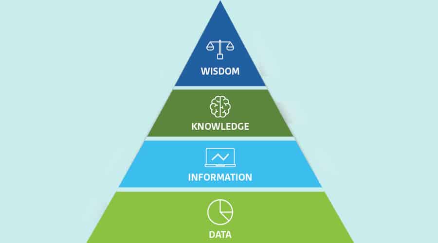 Selon les travaux de recherche de 1989 de Russell Ackoff, chercheur et théoricien américain en science de gestion de l’information, la conscience humaine peut être divisée en catégories : Datas (données), information, knowledge (connaissance) and wisdom (sagesse). En 2007, Jennifer Rowley, dans ses travaux de recherche, analyse ces concepts et la façon dont ils sont liés les uns aux autres. Le Data, Information, Knowledge, Wisdom model, plus connu sous le nom de hiérarchie DIKW est une méthode qui permet de montrer que les équipes IT peuvent générer des données et de la connaissance en se basant sur leurs activités quotidiennes. Cette méthode se modélise sous forme d’une pyramide avec comme socle les données et à son sommet la sagesse.