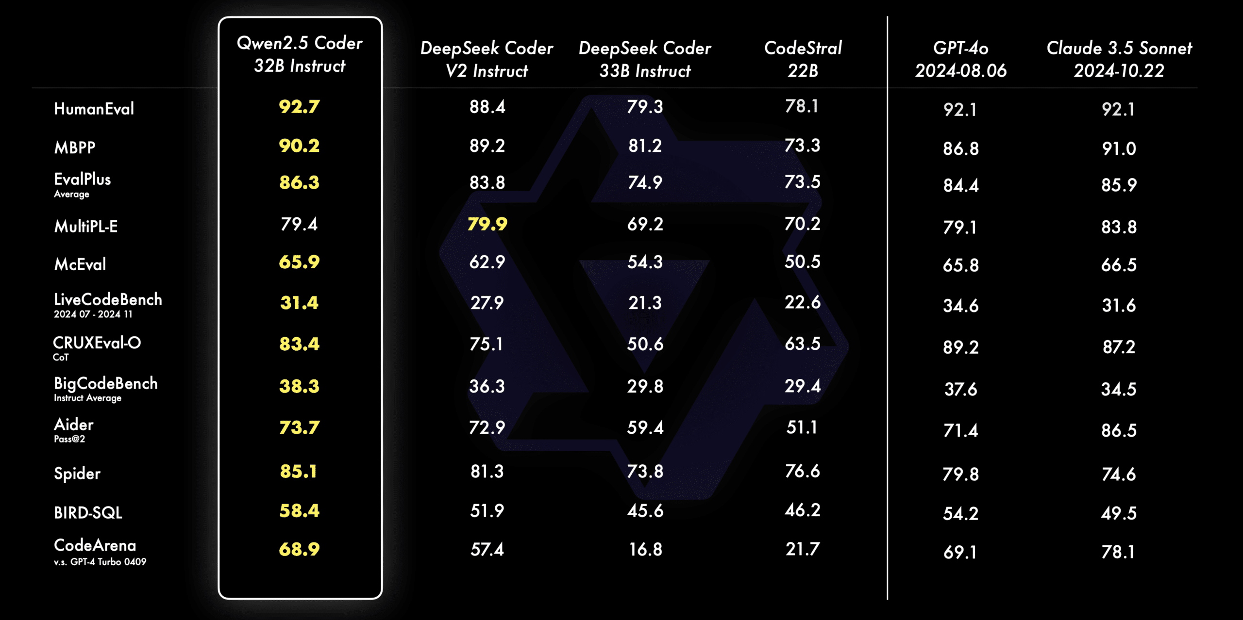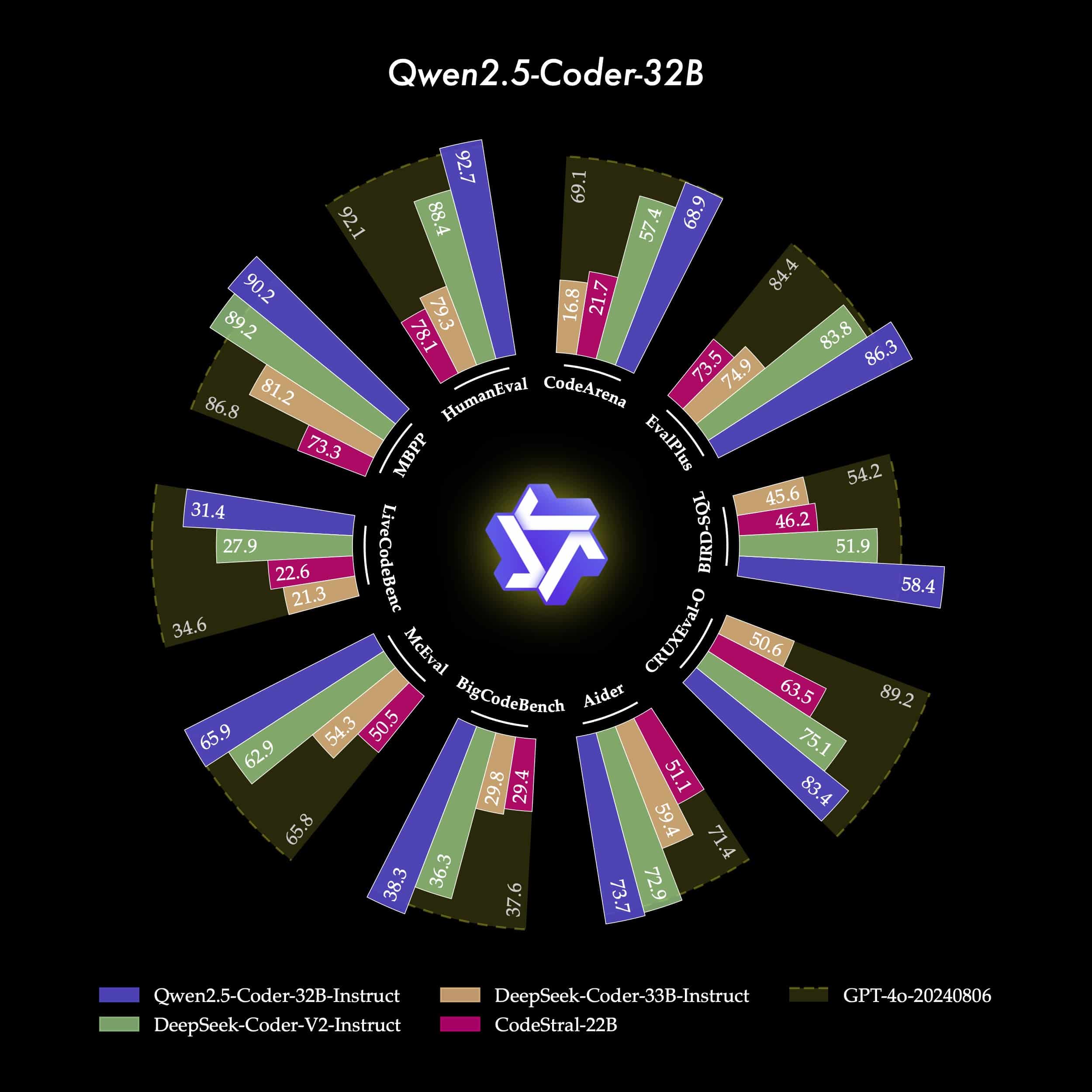 Qwen2.5-Coder se positionne comme une alternative plus abordable et personnalisable que GPT-4o et de Claude 3.5 pour les développeurs et les entreprises. Sur plusieurs benchmarks réputés comme EvalPlus, LiveCodeBench et BigCodeBench, il rivalise avec ces géants fermés, en atteignant des résultats de pointe dans la génération de code et la réparation automatique de code.