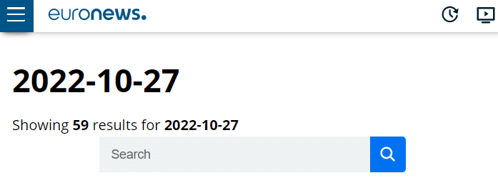 Tout d’abord, commençons par nous intéresser à la structure de l’url des archives d’euronews. Pour récupérer les articles d’un jour donné, l’url est de la forme : https://www.euronews.com/{years}/{month}/{days}