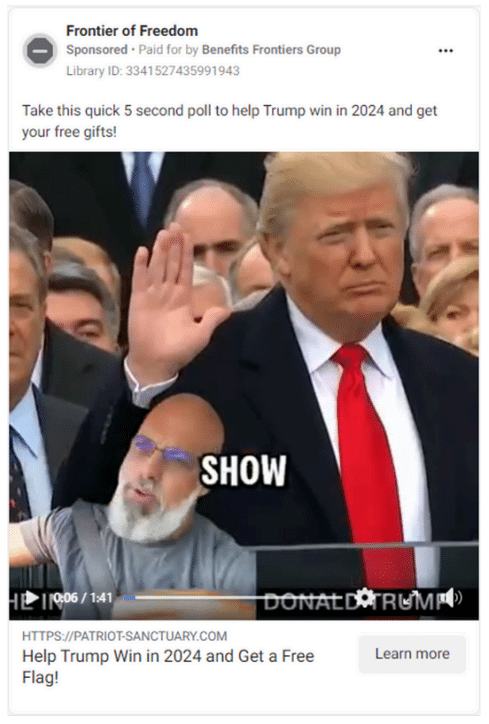 Les techniques de détection d’anomalies et les modèles de classification sont utilisés pour identifier les publicités potentiellement frauduleuses. L’étude ElectionGraph a mis en évidence l’existence de réseaux tels que « Liberty Defender », qui exploitent la crédulité des électeurs pour mener des escroqueries en ligne. Ces pratiques incluent la fausse promesse de cadeaux en échange de données personnelles ou de paiements mensuels cachés.