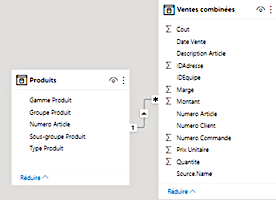 Dans l’exemple ci-dessous, les champs de la table Produit peuvent filtrer la table Vente combinées.