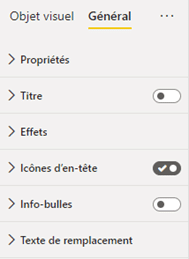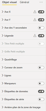 Vous pourrez ensuite personnaliser à souhait les différentes options visuelles grâce au volet « Mettre en forme votre visuel » :