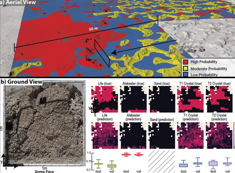 L’équipe de scientifique a choisi la zone de Salar de Pajonales, zone entre le désert chilien et l’Altiplano, pour représenter artificiellement Mars. Lors des tests sur les données terrestres, l’IA entraîné de Rhodes à su localiser et détecter des biosignatures avec 87% de précision. Le chercheur en chef indique que ce taux monte à 97% lorsque l’on réduit la taille des zones de recherches.