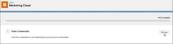 | 4 | Connecter à Marketing Cloud | Associez un compte Marketing Cloud en utilisant les identifiants administrateurs. |